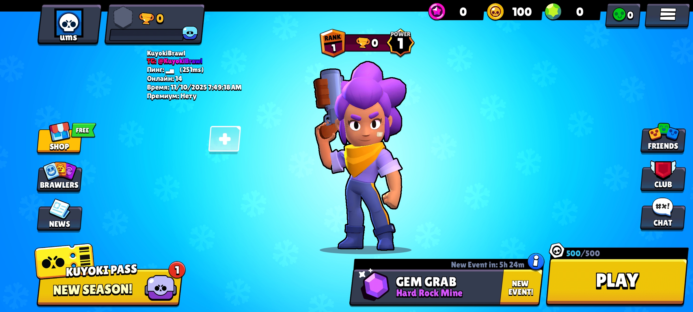 Kuyoki Brawl’s in-game store functions just like the official one, letting you purchase or claim items with in-game currency. You can also access a fully functional Brawl Pass, complete with Mega Crates and seasonal rewards—giving you the thrill of progression with none of the grind.