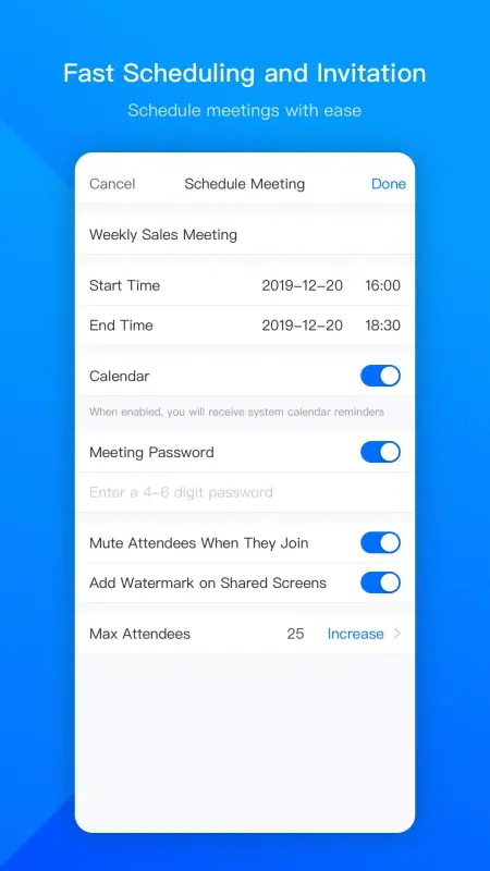 - Tencent Cloud's worldwide network allows you to schedule several concurrent meetings.